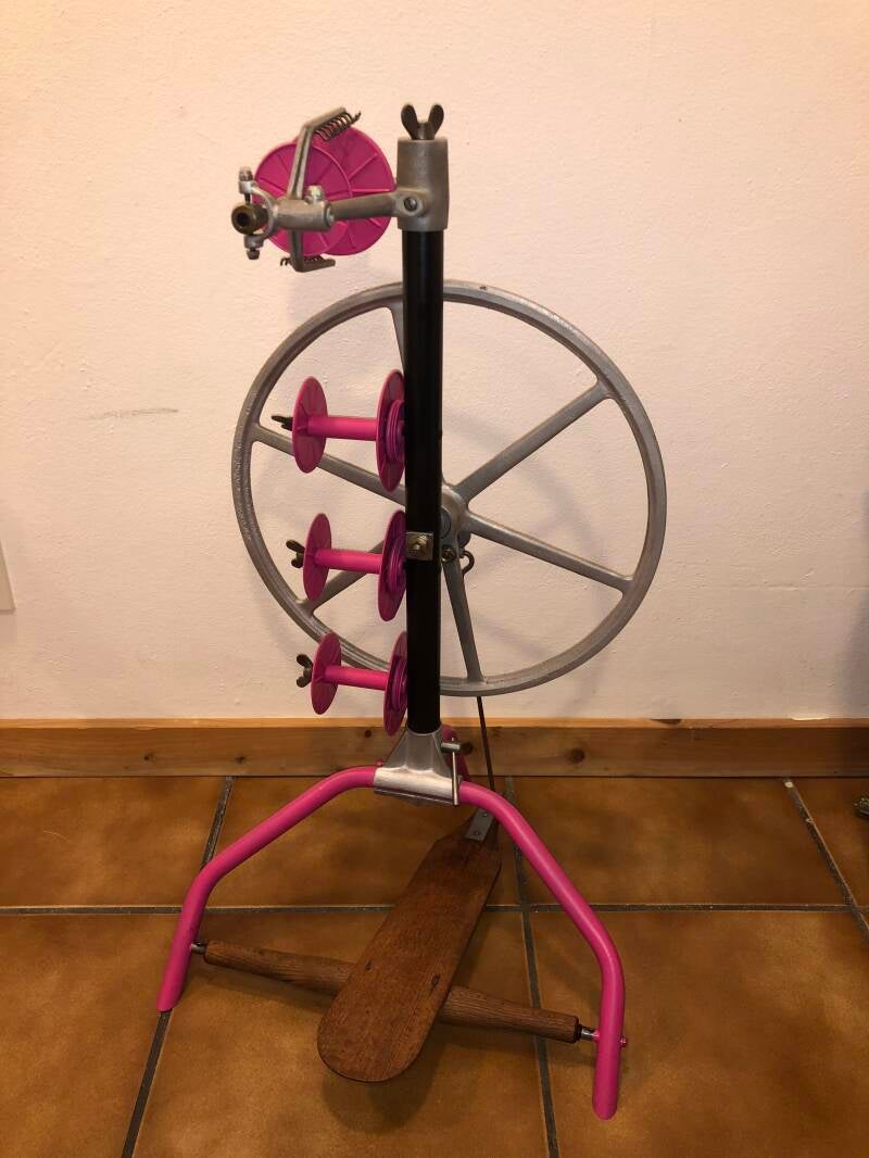 Spinnräder dieser Firma sind sehr häufig in Norddeutschland zu finden, so auch dieses. Es war ein Scheunenfund.
